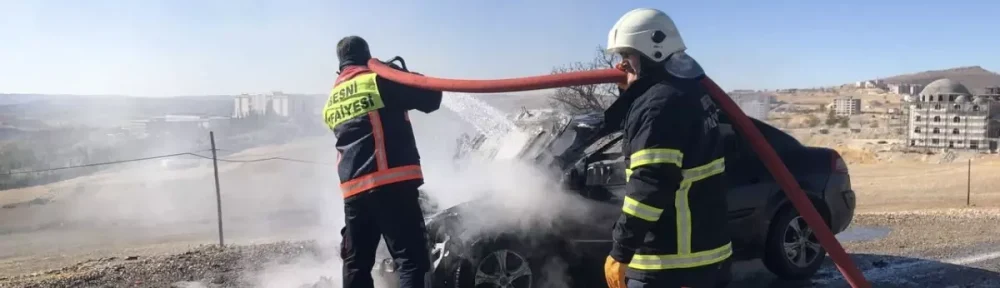 Besni’de Yolda Alev Alan Otomobil Kullanılamaz Hale Geldi